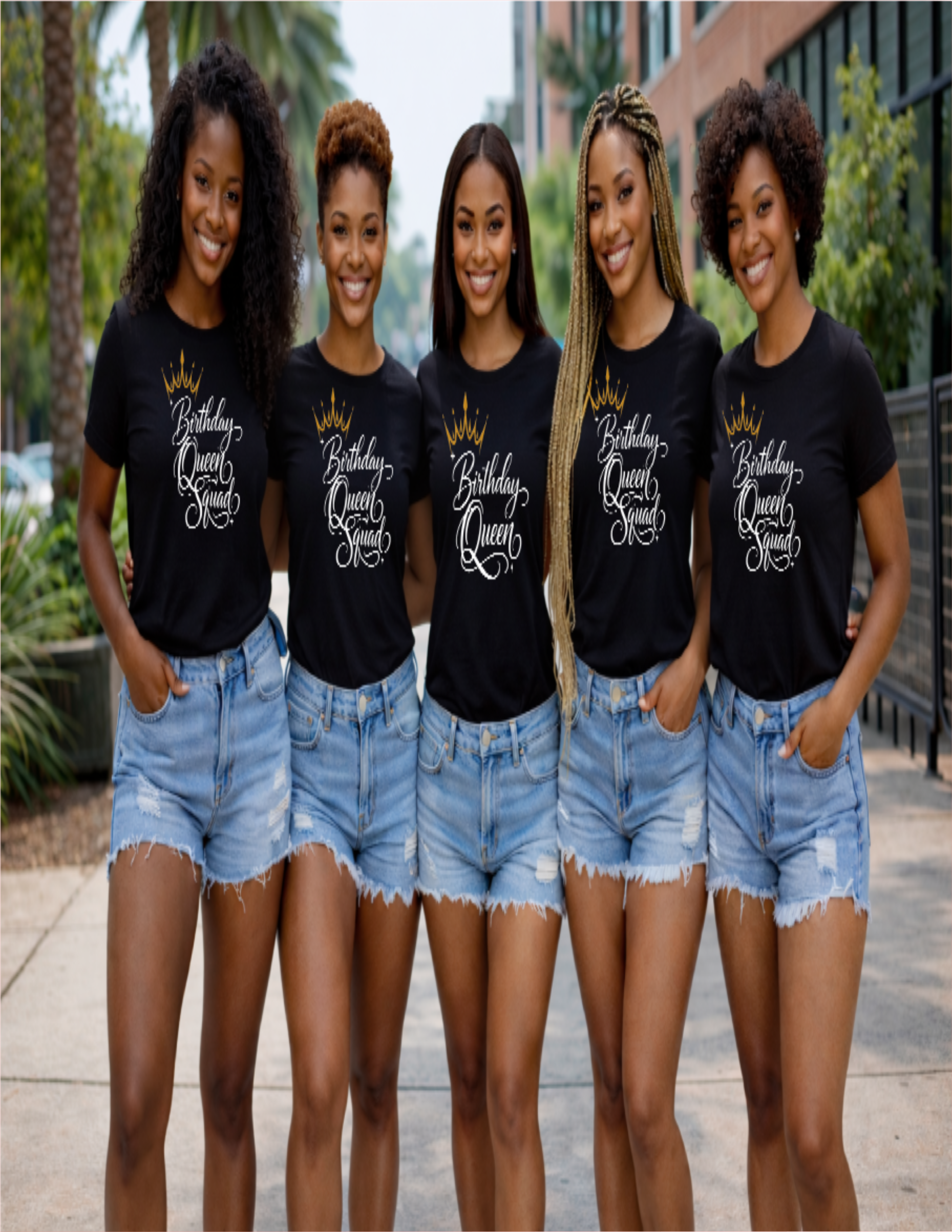 Celebrate in style with our Birthday Queen & Birthday Squad tees, perfect for birthday celebrations, matching squads, and unforgettable moments.